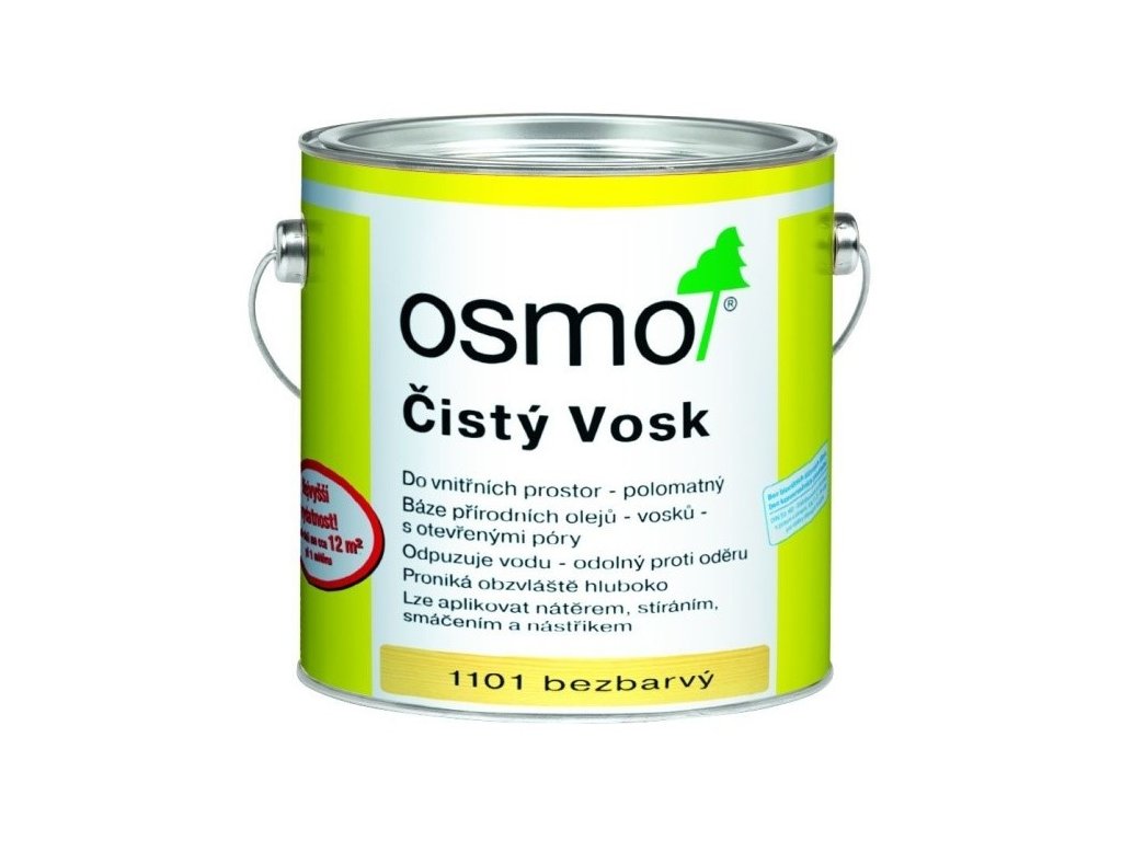 OSMO – ČISTÝ VOSK je bezfarebný, hodvábne matný, určený na ošetrenie všetkých typov drevených podláh, stropné a stenové obloženie, povrch nábytku a hračiek.