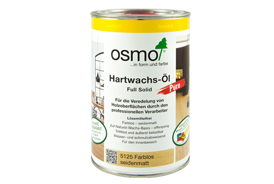 OSMO – TVRDÝ VOSKOVÝ OLEJ 2K – PURE je vysoko kvalitný, 2 komponentný tvrdý voskový olej bez obsahu rozpúšťadiel (a vody), určený pre profesionálne použitie. Hotový povrch je odolný voči nečistotám, vode a oderu. Jednoduchá aplikácia bez základovania a medzibrúsenia šetrí čas aj peniaze. Odpudzuje vodu, je nenáchylný k zašpineniu, odolný proti ošľapávaniu. Osmo Tvrdý voskový olej 2K Pure je odolný voči vínu, pivu, kolovým nápojom, káve, čaji, ovocnej šťave, mlieku a vode; podľa DIN 68861-1A. Osmo Tvrdý voskový olej 2K Pure bol vyvinutý pre mechanickú aplikáciu.