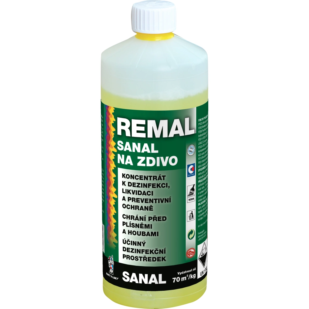 REMAL SANAL NA MURIVO sa používa na sanáciu, aj preventívnu ochranu muriva, omietok, kameňa, betónu a iných stavebných materiálov pri napadnutí plesňami, hubami, lišajníkmi, riasami a baktériami. Prípravok používajte bezpečne! Pred použitím si vždy prečítajte údaje na obale a pripojené informácie o prípravku.